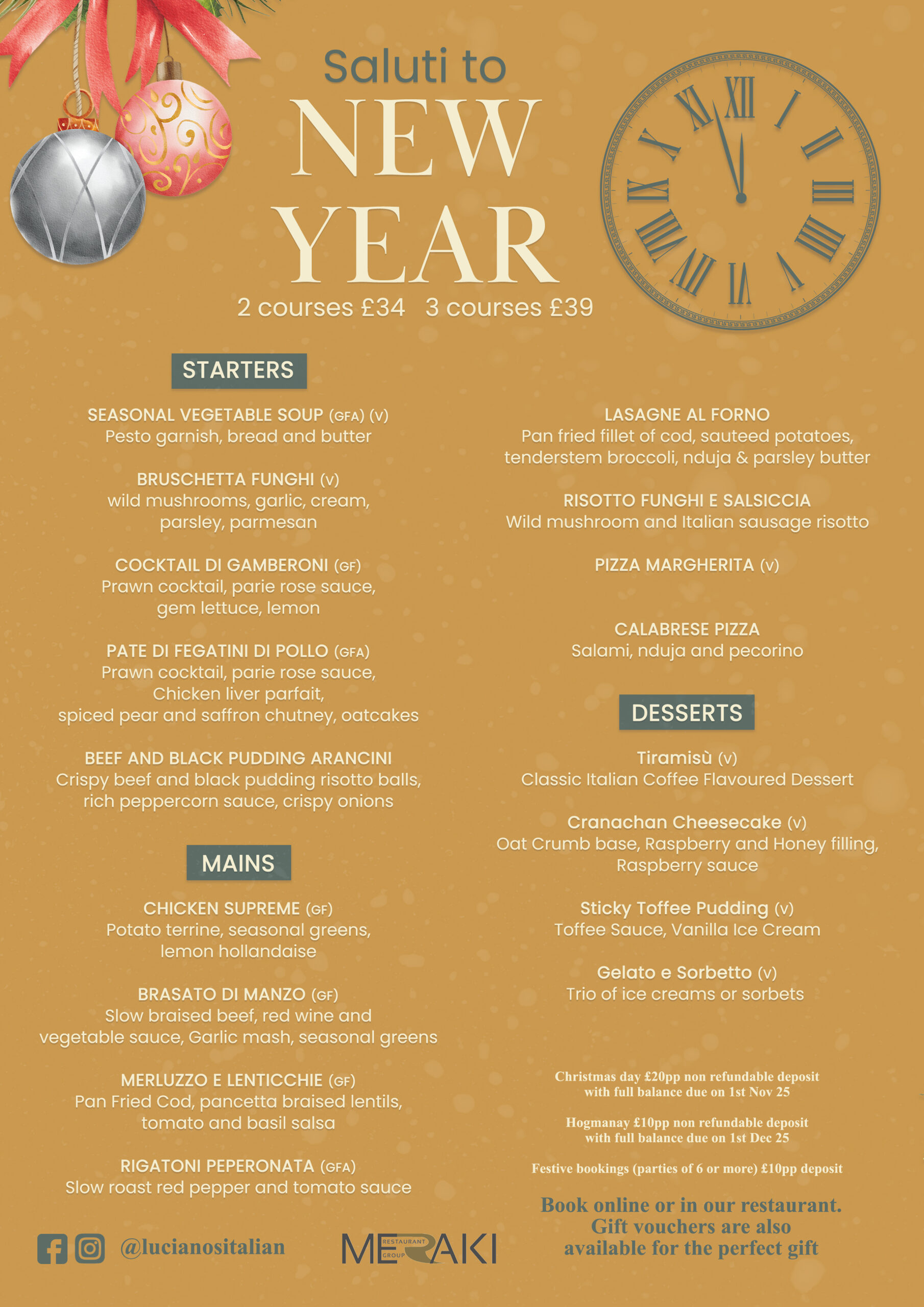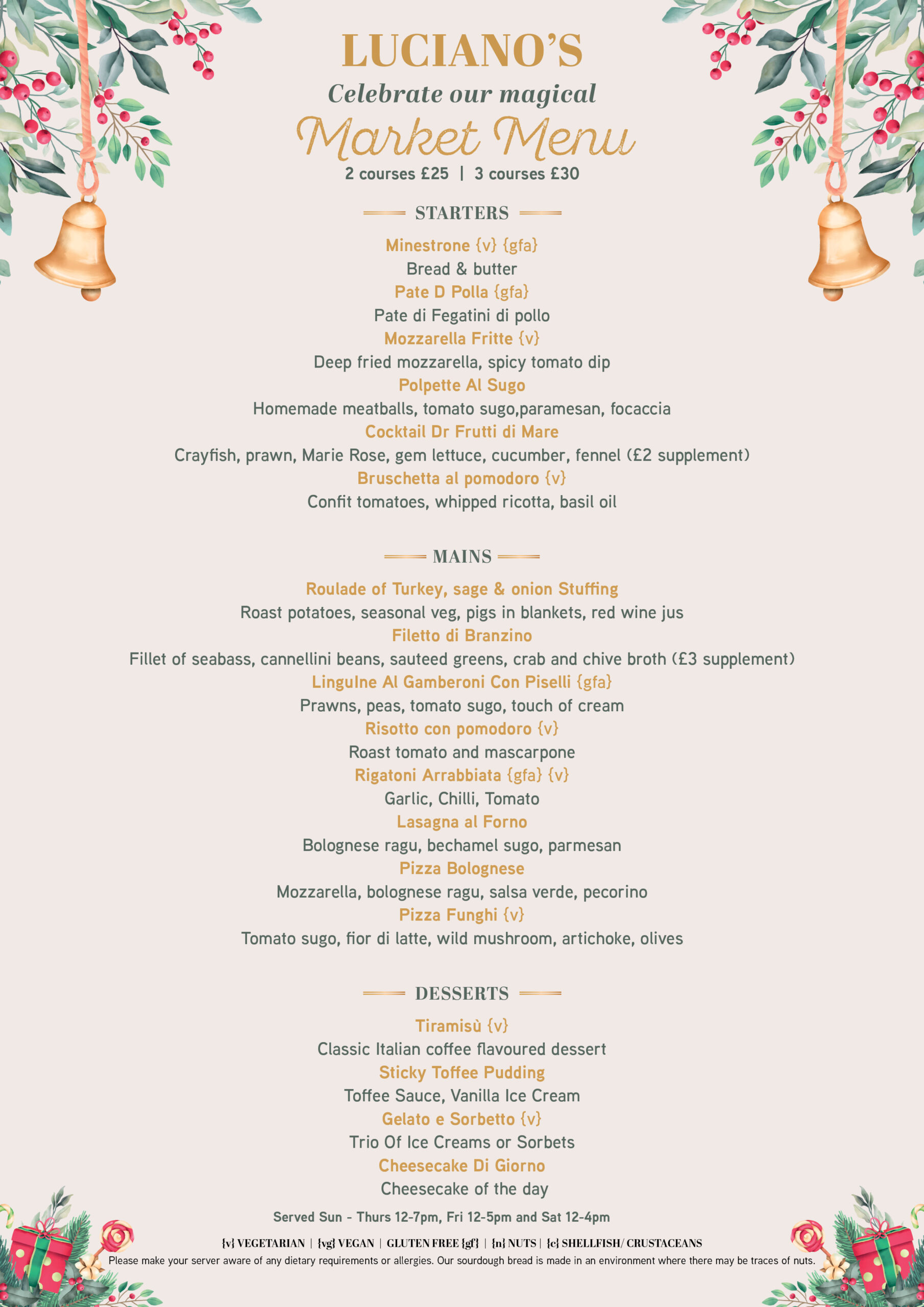 Our festive menus are filled with all the traditional classics and a touch of our Luciano’s love to make this festive season one to remember.