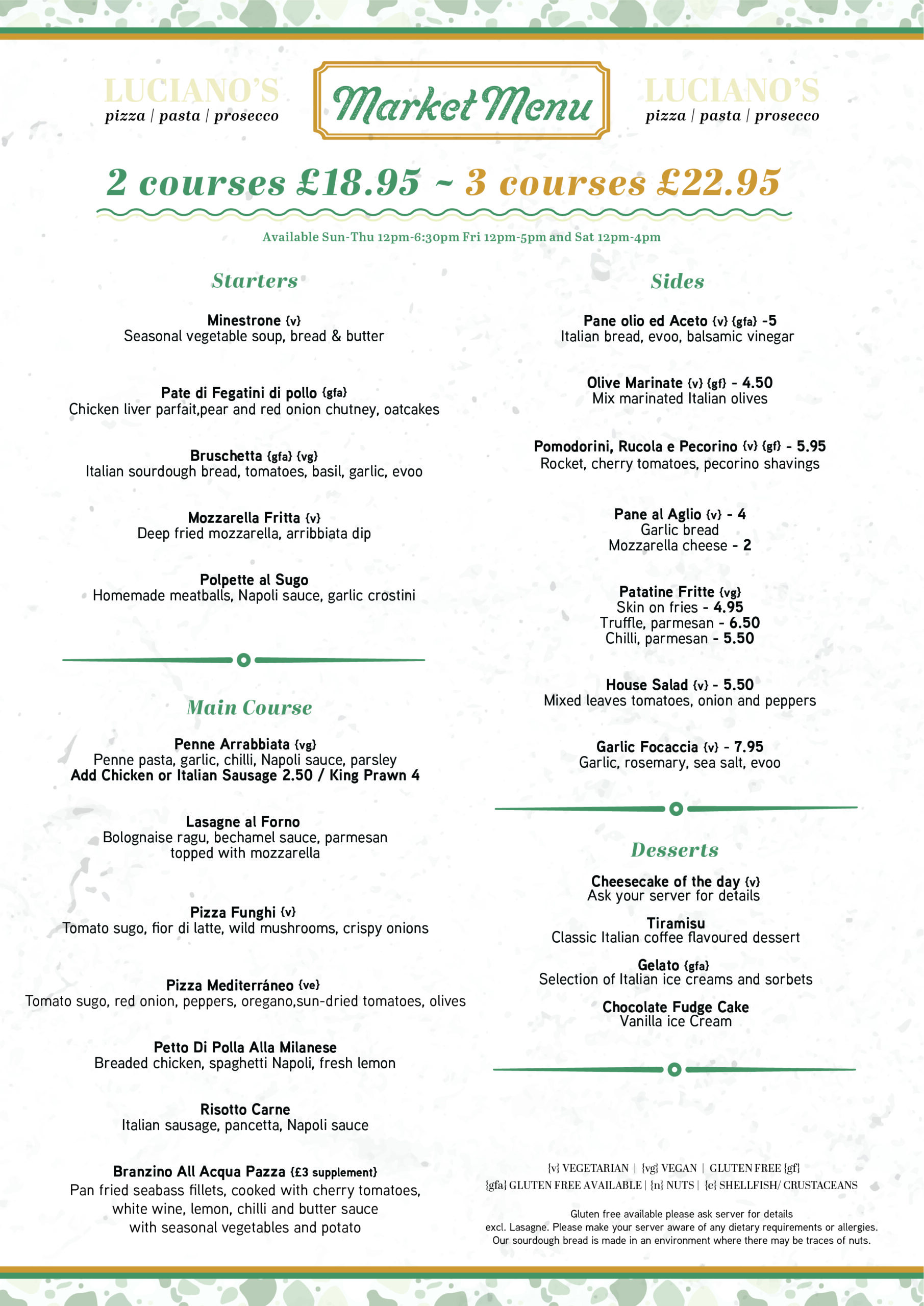 Our wonderful menus have all the traditional Italian classics that you all know and love.We’ve also put our loving Luciano spin on a few dishes so why not pop in and try for yourself?